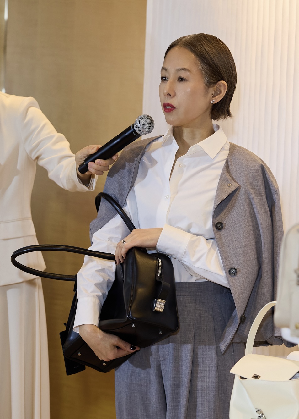 「まず、コレクション名“SUIHA(スイハ)” (=『瑞波』。瑞々しい波や、良い兆しを運ぶ波をイメージした造語)に込められた思いが、バッグとは思えないくらい素敵です。物の持つストーリーにも心を留める年齢になってきましたね。中でも気に入ったのは『ボストンバッグ』。出張など荷物が多い日にはPCまで入り、肩にもかけられる。荷物が少ない日には、抱えるようにギュッと持つのも可愛いですね。バッグをバッグらしく持たないのも、意外とかっこよく見えるポイントだと実香さんがお話しされていて、なるほどと思いました。コレクションのアイコンとなる留め具の位置に奥ゆかしさもありますし、高級感とシンプルな使いやすさが揃っているので、“買ってよかった”と長く思えるバッグだと思います」