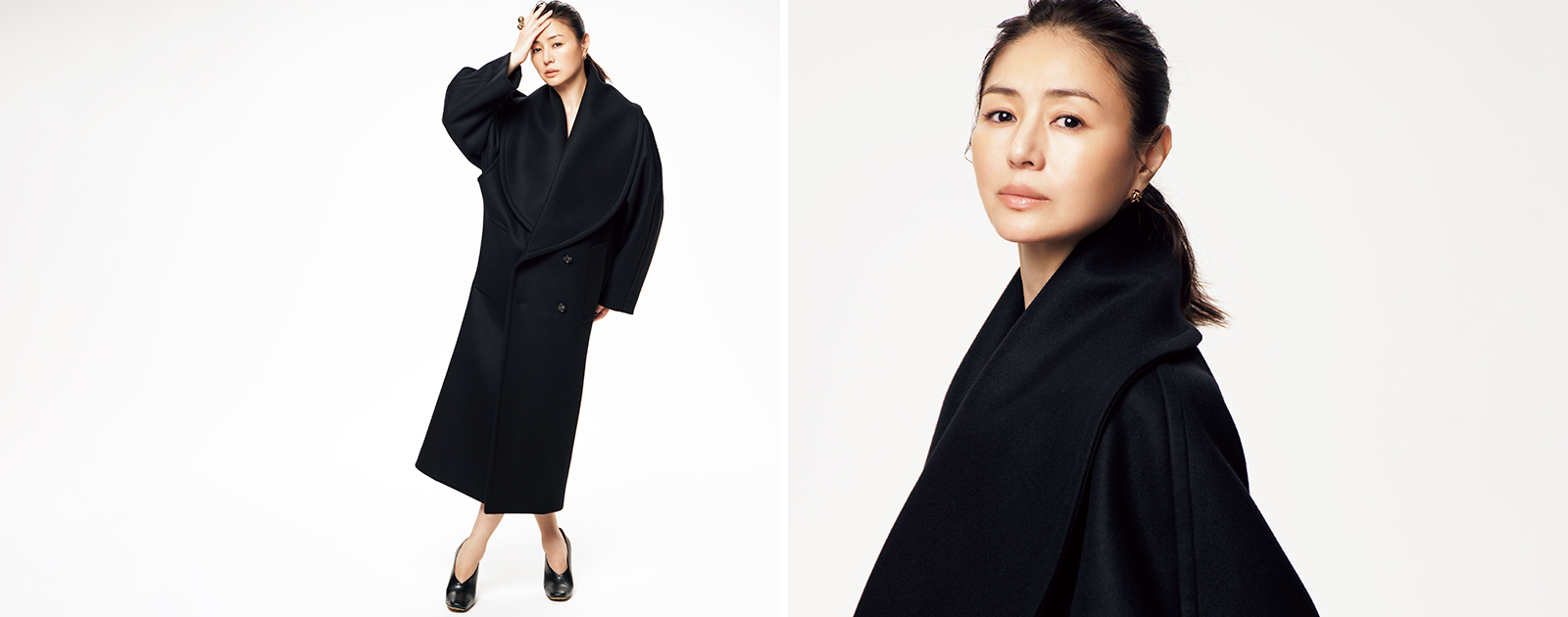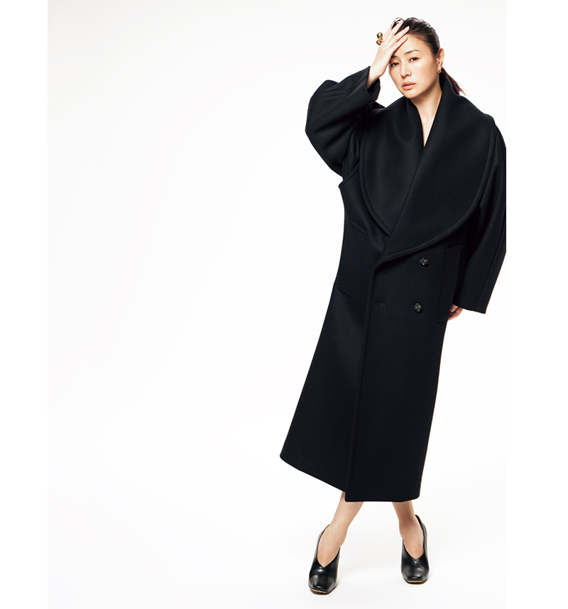 VERY卒業から10年、NaVY初登場にあたり、撮影のテーマに掲げたのは“私たちが憧れる井川遥さん”。ショールカラーのコートを、ドレスのように着こなす。かっこよさと艶のあるブレないエレガンスは、唯一無二。そんな井川さんはこの先、どんなふうに歳を重ねて自身と向き合っていくのだろうか。“これから”について聞いてみた。「子育てのゴールまではまだ時間がかかりそうですが、上の子がだいぶ大きくなって同じ目線で会話ができるようになったことで、子育ての終わりを想像できるようになってきました。経験値が増えて大切にしたいことにフォーカスすることができるようになって少し肩の力が抜けてきたかなと思います。一方でここ1、2年は40代の自分を感じます。心も体も揺らぐ年代、体力的なこと、髪や肌の変化を感じます。向き合って無理をしすぎず楽しみを見出していきたいですね。そして新しいことに挑戦するとき、なんでも面白がって取り組んでいける自分でいたいですね」