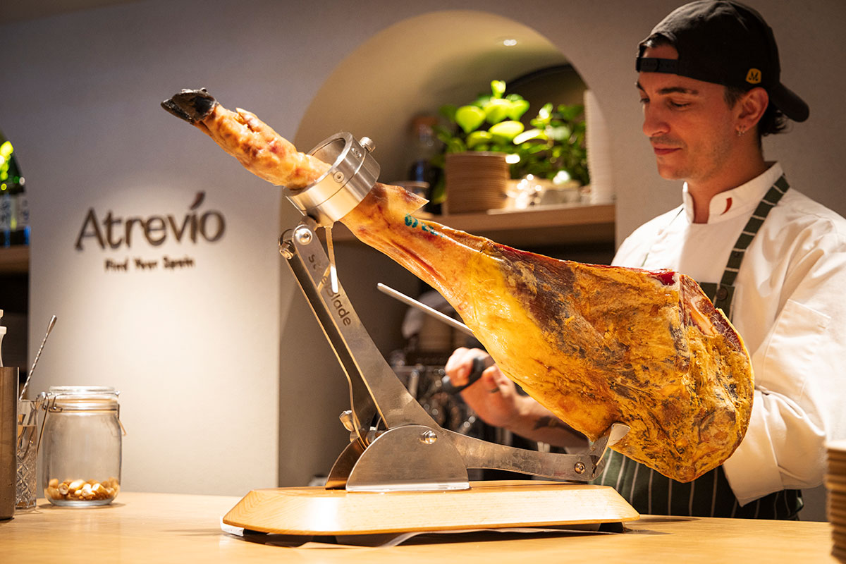 部下と二人の会なら、ぜひこちらへ。東京・麻布十番にオープンした“ハモンリア”(=ハモン専門店)の「アトレヴィオ」は、洗練された空間で気軽にイベリコを中心とした数種類のハモンやオリジナルのスペイン伝統料理を楽しめると、グルマンたちも注目の店。スペインでハモンは家族や仲間と囲む食卓の中心にある、人と人とをつなぐ存在なのだとか。まさに、相手と距離を縮めたい恰好の場所です。ハモンを知り尽くすコルタドールが一枚一枚丁寧にハンドカットして提供されるハモンの美味しさは格別で、部下の胃袋もがっちりつかむはず(笑)。そして、日本の食材をリスペクトしているというミゲル・パルドヘッドシェフが生み出す新しいスペイン伝統料理に感じるのは心地よい高揚感と温かさ。これに冷えたカヴァがあればさらに会話が弾みそう!この店を選んだ上司の株が上がるはずです。