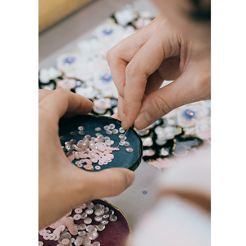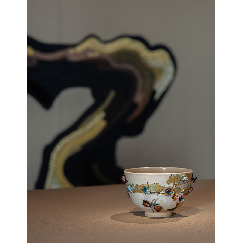 申さん:お会いできて光栄です。今年10月まで開催されていたシャネルによるクラフツマンシップを讃える展覧会『la Galerie du 19M Tokyo』に伺い、感動したのは手仕事の可能性。フランスのメティエダールと日本の職人技が作品を通して交差する試みが話題となりましたが、アトリエ モンテックスは土風炉/焼物師の十八代永樂善五郎さんとコラボレーション。器に刺繡を施すというアイデア、あれは想像し得ない美しさでした。