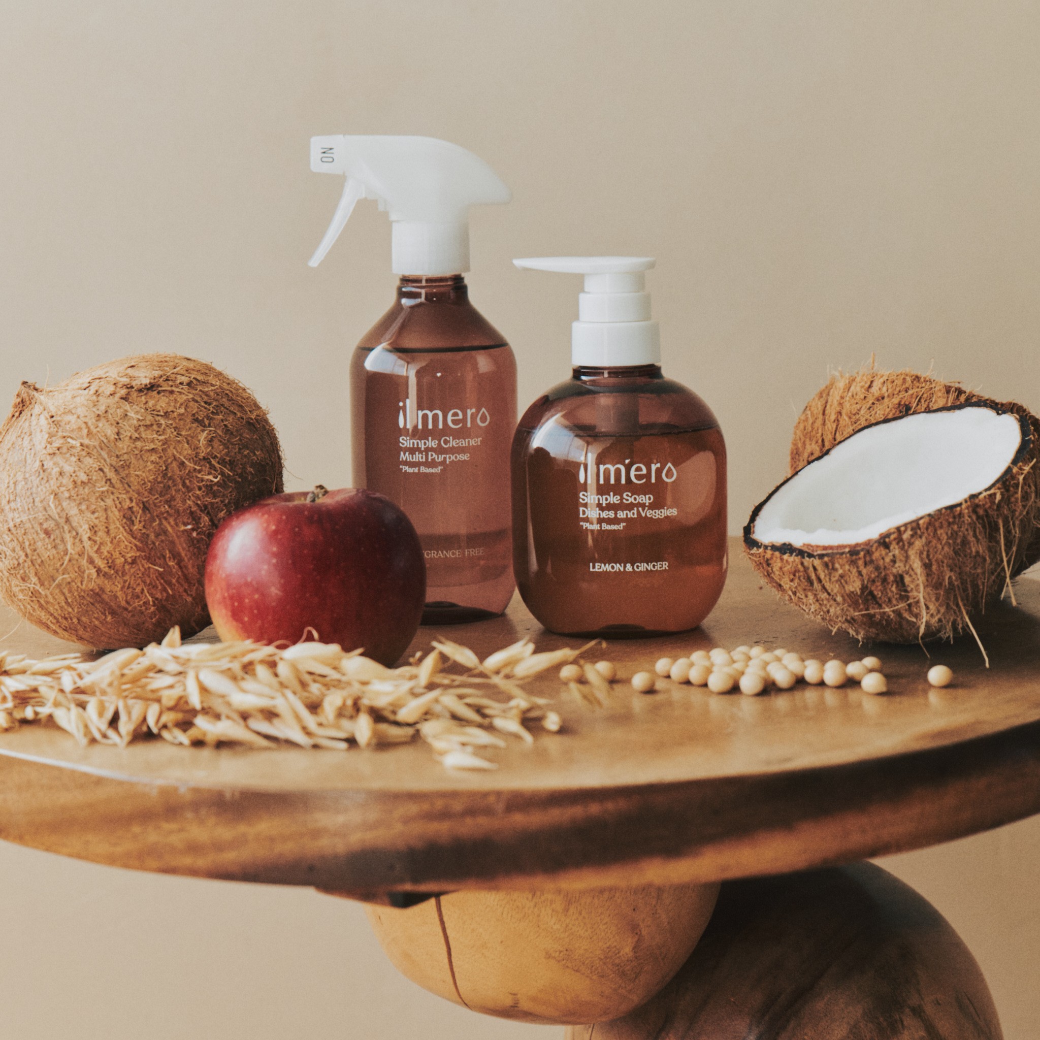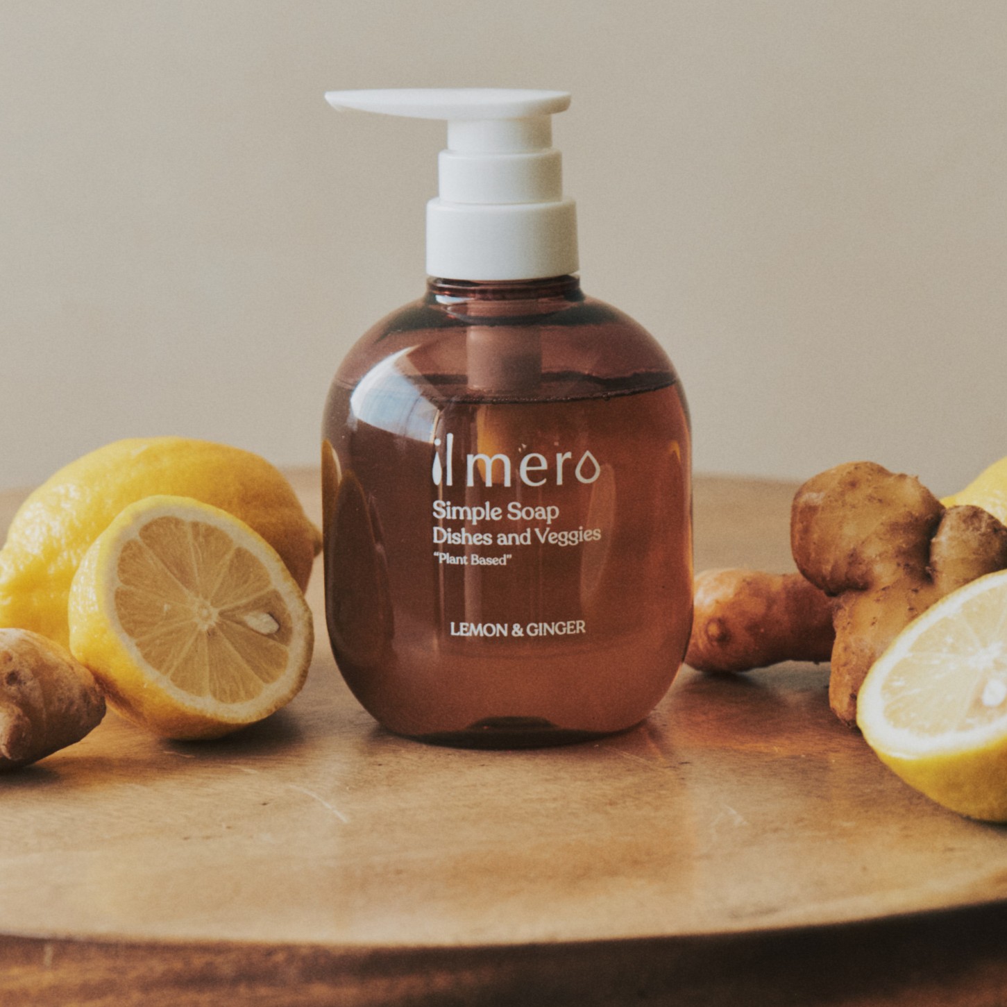 「il meroの商品は環境への配慮にもこだわりました。含まれる成分は生分解性が高く、約99%が排水されたあとに微生物により速やかに分解されるため、河川や海洋に負荷をかけることなく自然に還ります」(MINさん)。原料は石油由来成分や合成成分も不使用で、植物由来の洗浄成分のみ。「”食器・野菜用洗剤”は、お皿を洗うだけでなく、私は農薬が気になる野菜や果物を洗う時にも使用。しかも、洗浄成分は手肌にも優しく手荒れがしにくいのもポイントです。安心安全なだけではなく、しつこい油汚れもしっかり落としてくれるので、洗浄力にも満足できる商品に仕上がりました」(MINさん)。精油をブレンドしたレモン&ジンジャーの爽やかな香りで、使うたびに癒されるのも魅力です。