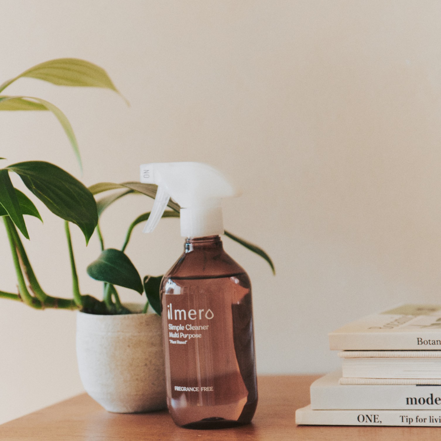 MINさんが導き出した理想の暮らしは、用途別洗剤をたくさんストックせずとも”最小限のアイテムで日々の家事や作業をシンプルに”すること。「キッチンではフライパンやガスコンロ、換気扇の油汚れの掃除、魚焼きグリルの汚れや匂い落としを、トイレやバスルームでは洗浄・消臭・除菌を、”多目的クリーナー”1本でまかなっています。さらに衣類についた食べこぼしや血液の汚れ、スニーカーの汚れを落とす時、車中の消臭、子どもの玩具の除菌など……私はあらゆるシーンで活用しています。こちらも石油由来成分や合成成分、そして香料を使用せず、原料と成分の安全性にこだわりを。ペットのシャンプーとしても、おすすめしています」(MINさん)