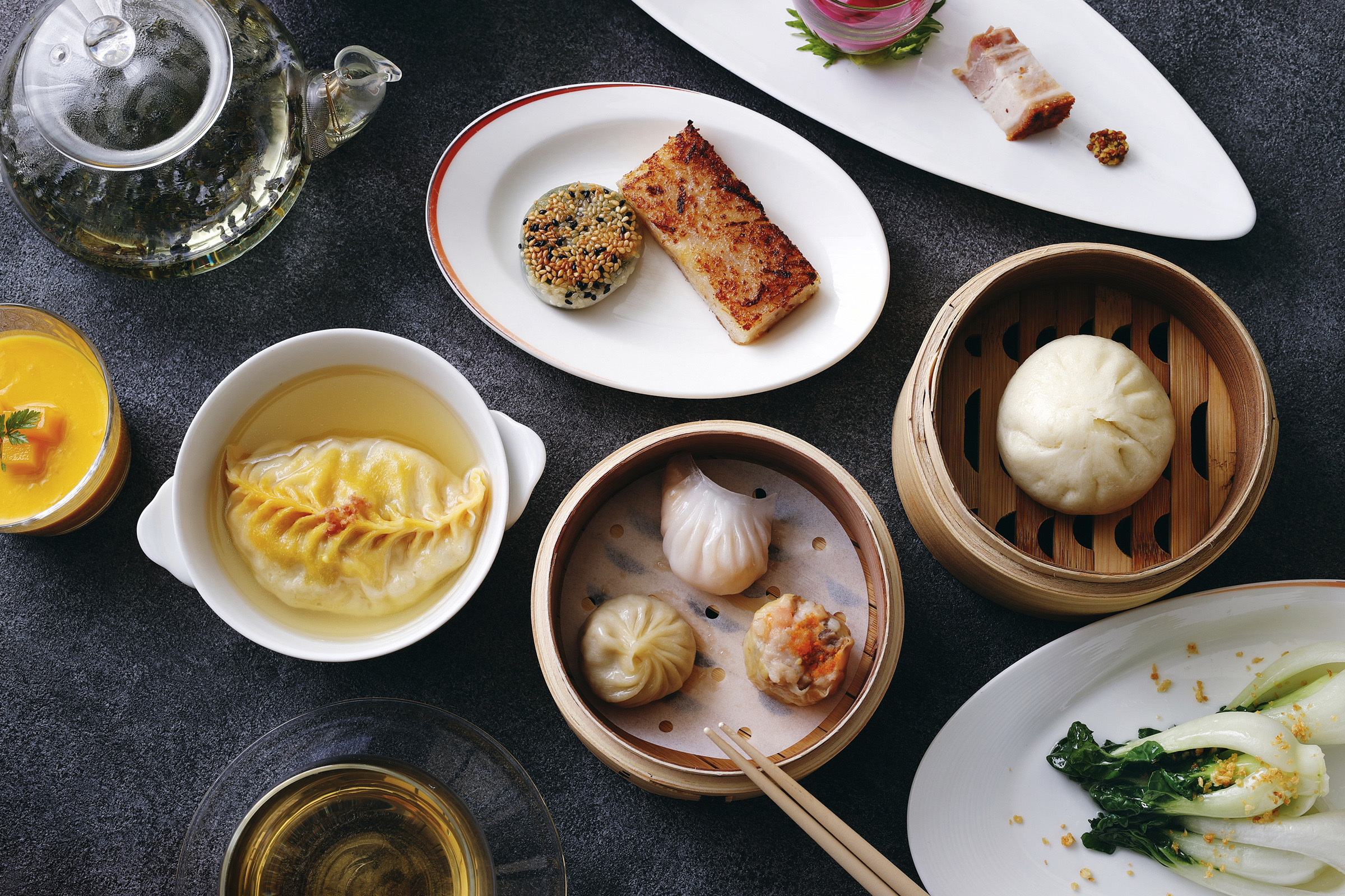 年末年始限定のコースのほか、注目してほしいのが通年楽しめる「龍天門点心コース」。熱々の湯気が立ち上がる作り立ての点心を中心に、季節の素材を活かした広東料理で本場香港の味わいが堪能できる豪華なランチコースです。龍天門名物の「龍天門特製北京ダック」と「小籠包」に、自家製XO醬で仕上げた「むき大海老と帆立のXO醬炒め」、「香港飾り中華菓子入りデザートプラッター」など前菜からデザートまで充実のラインナップが揃います。※お料理の写真は一例です。