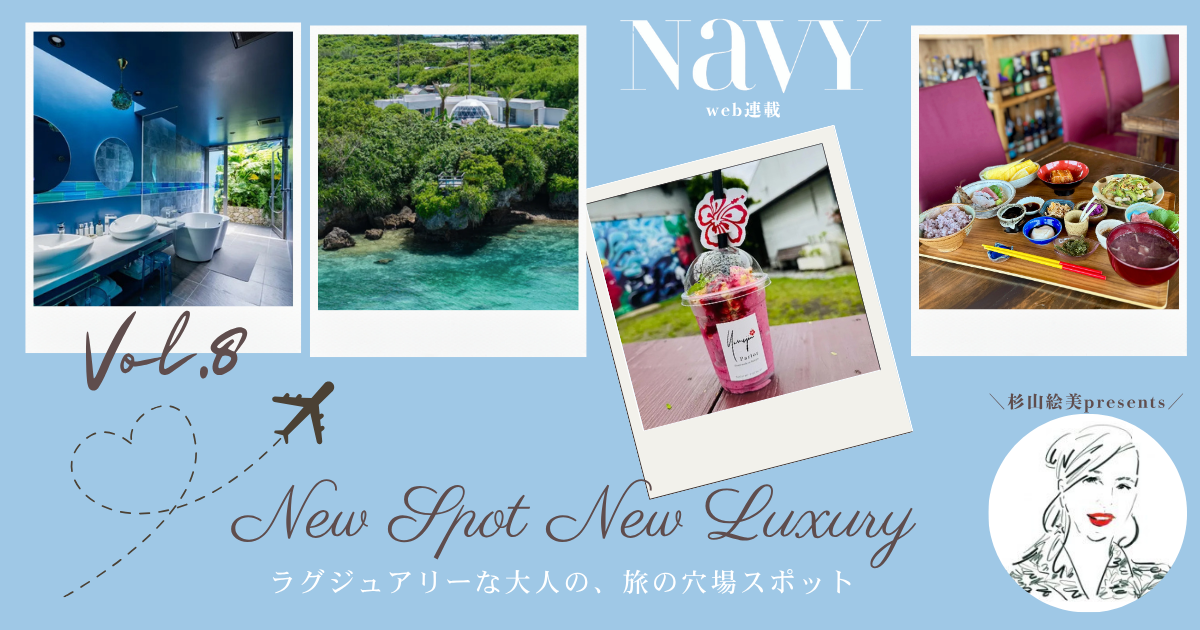 料理家、ライフスタイルプロデューサーとして活躍する杉山絵美さんは、国内外を飛び回り、その行き先は王道のラグジュアリーから想定外な穴場まで…。そんな杉山さんが着目した旅情報を紹介する連載【NEW SPOT NEW LUXURY】。第8回は身も心も癒す、今、一番贅沢な沖縄旅をご紹介します。