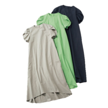程よく華やかなチューリップ袖に上品なAラインシルエットのワンピースは、シンプルなデザインなので来年も飽きなさそう。涼しくなってきたらカーデを羽織ったりと秋の始まりまで着られます。合わせるシューズによってカジュアルにもきちんとしたシーンでも使えて万能です。