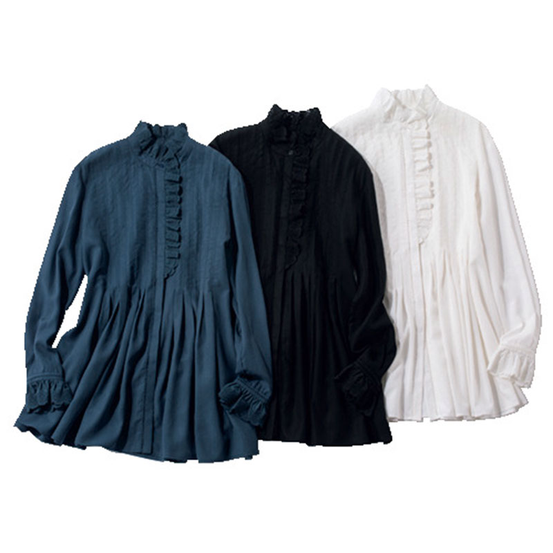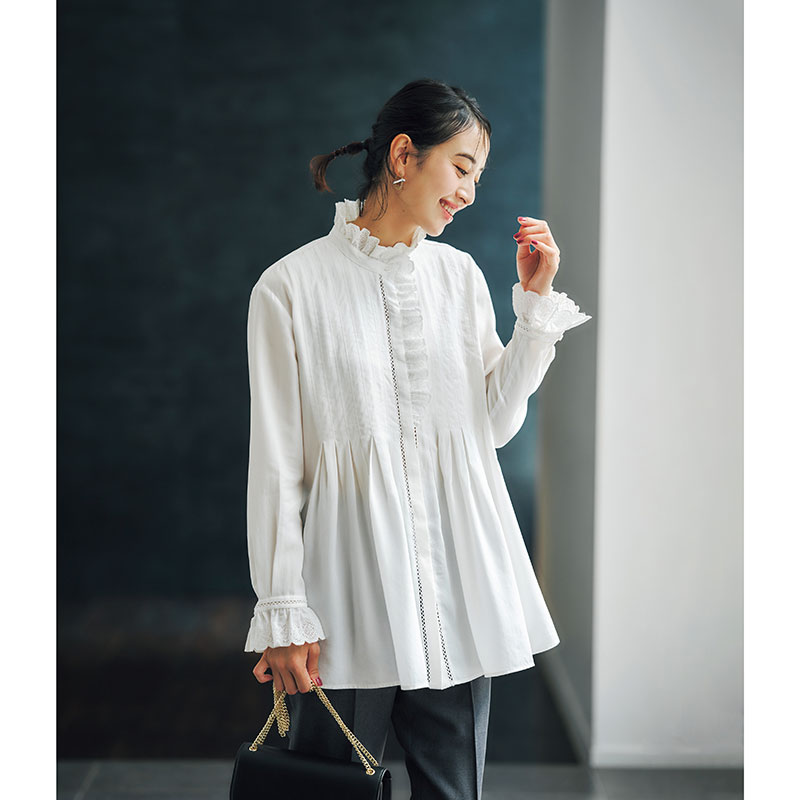 一枚ではもちろん、ニットやカーディガンを重ねて、首元や袖口のレースを覗かせたスタイリングもおすすめ。