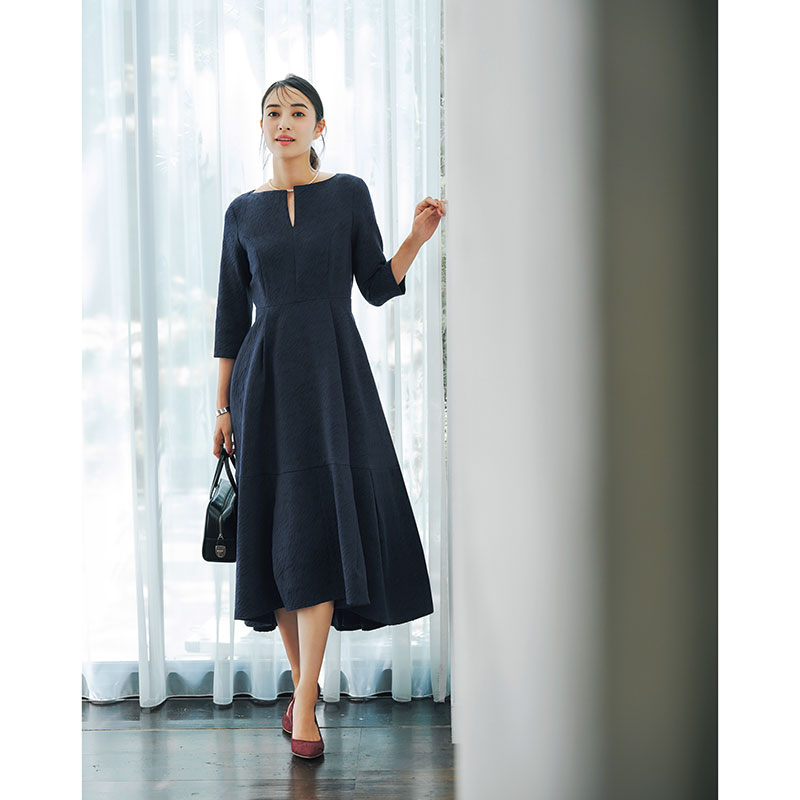 キーネックジャカードドレス