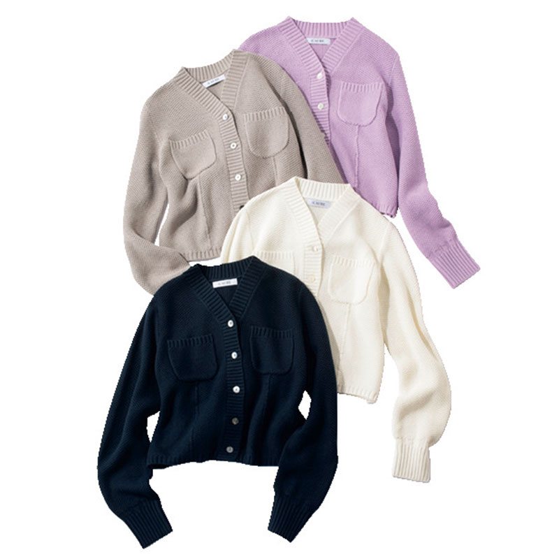 柔らかな雰囲気ながら、鋭角なV開きによってほっこりせず、スタイリッシュに着られるのが人気のポイント。
