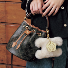 パールストラップを持ち手にすれば、可愛らしいハンドバッグ風に。