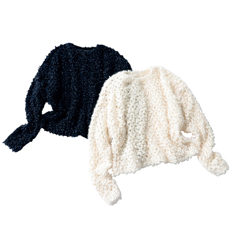 クルーネックのラメ入りニット。ざっくりとしたローゲージで、シャツやタートルトップスの上に重ねても、抜け感のあるオシャレが実現。