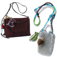 ニット¥9,900 レッスンバッグL¥5,500 シューズバッグ¥3,500(すべてアジュガ)パンツ¥30,800(ヤヌーク╱カイタックインターナショナル)ピアス¥16,500(ミキア)