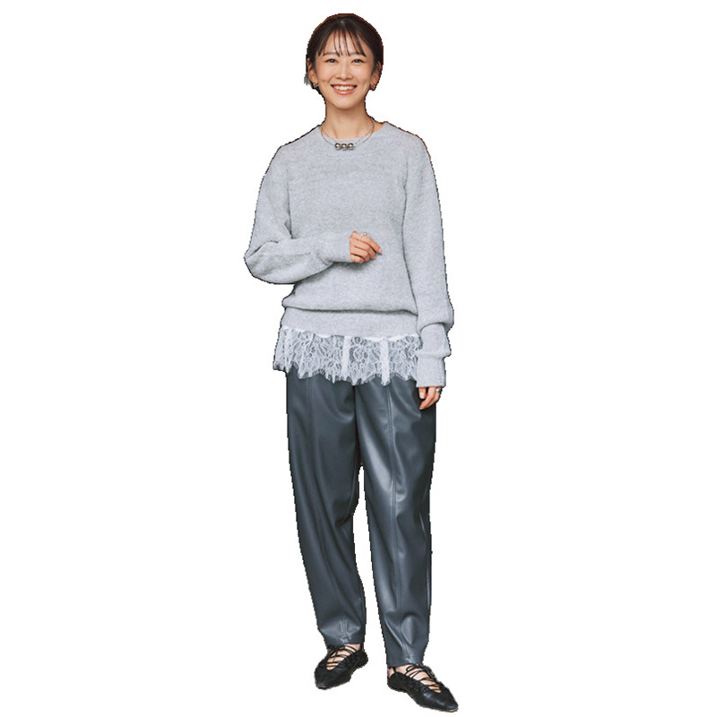 ニット¥15,400(ヴェルソー)パンツ¥36,300(タンジェント╱ザ エディット ストア)バッグ¥42,900(オルセット╱オルサ)ピアス¥6,820ネックレス¥9,900(ともにアビステ)ローファー¥32,450(カミナンド╱グラビテート)
