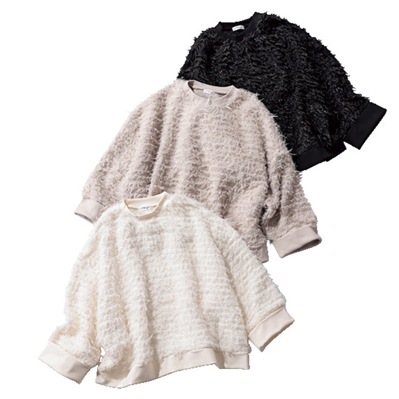 昨年大好評だったアイテムに、新色・ベージュが加わり再登場。シャギー素材のオーバーサイズプルオーバーは、年末年始のイベントにおすすめ。手洗い可能。