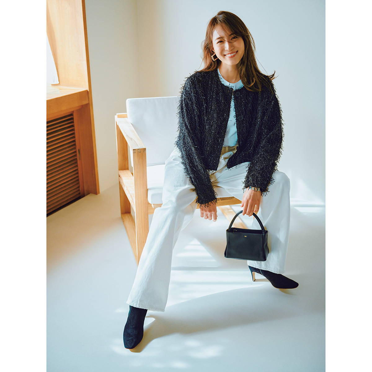 【ラメシャギーカーディガン分】撮影/川﨑一貴〈Ajoite〉 モデル/笹川友里 スタイリング/石関靖子 ヘア・メイク/福川雅顕 ディレクション/嶺村真由子 取材・文/岸本真由子 編集/西脇治子
