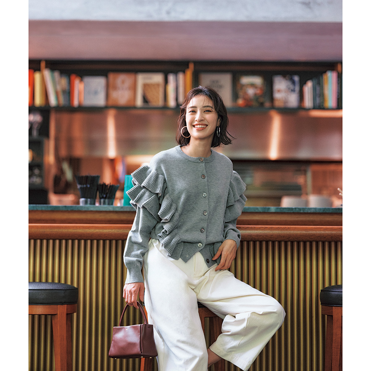 【ニットフリルカーディガン分】撮影/金谷章平 ヘア・メーク/あきやまひとみ スタイリング/石関靖子 モデル/岡本あずさ 取材・文/嶺村真由子