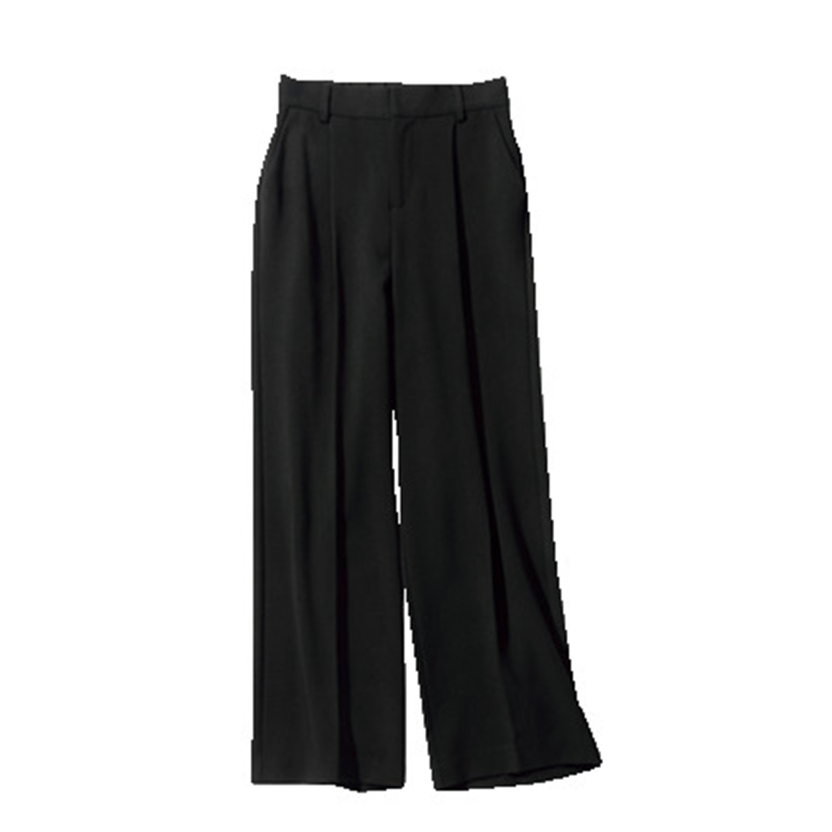 ジレ、パンツ、ブラウスの3点セットで、コーデの悩みを一気に解決。ジレのアシンメトリーなフロントデザインがスタイリッシュな印象を与えつつ、セレモニーシーンにふさわしいきちんと感を演出。ブラウスの衿はジレと完璧にマッチするよう計算されており、セット売りならではの完成度の高さが光ります。ワイドストレートのパンツは、体形を拾わないゆとりが嬉しい。