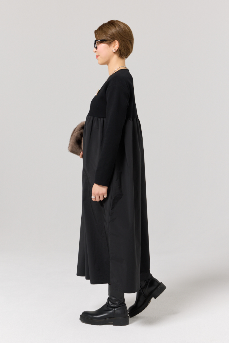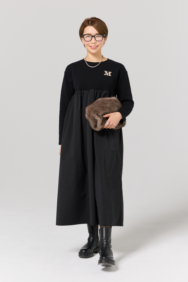one-piece/[ALEGRE]ドッキングワンピース brooch/Max Mara bag/UNBILLION glasses/Gentle Monster boots/The Row