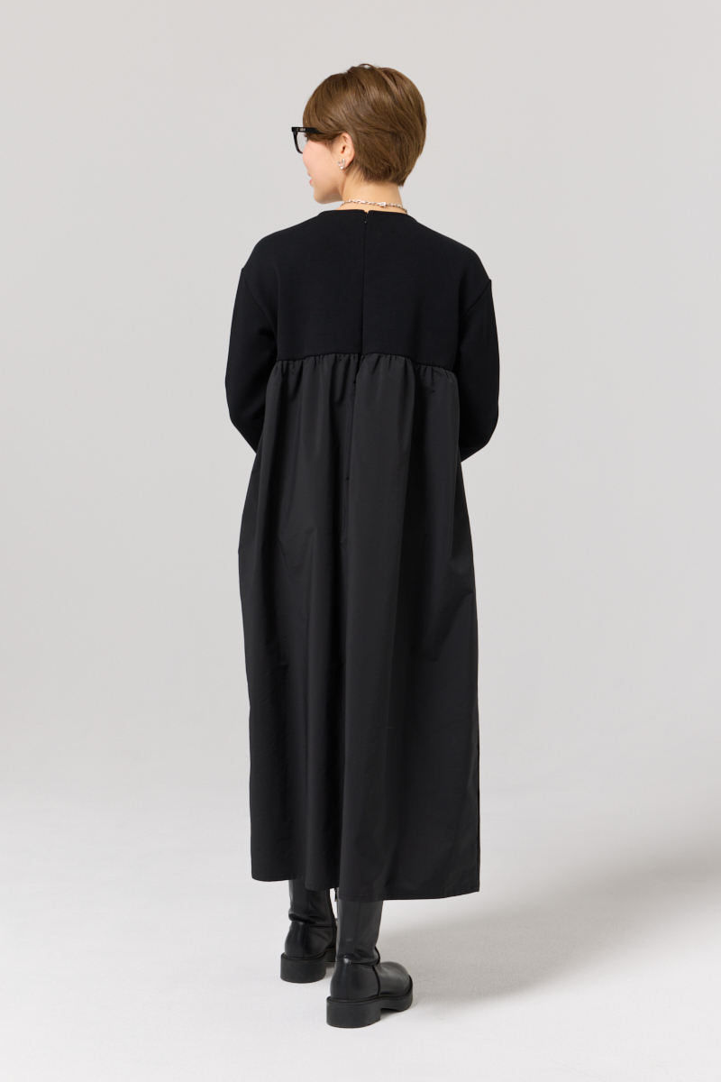 上身頃はもっちり柔らかなダンボール素材、スカート部分はハリのあるタフタ素材を使用した、1枚で絵になる存在感が大人気のワンピース。ふんわり広がるドラマチックなラインが日常を華やかに彩ってくれます。後ろファスナー開きで着脱も簡単。デイリーからパーティまで幅広く活躍する投資価値のある1着です。¥16,500