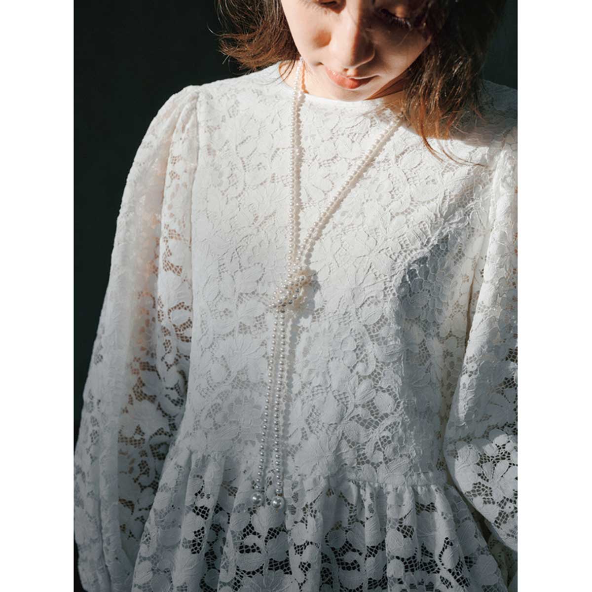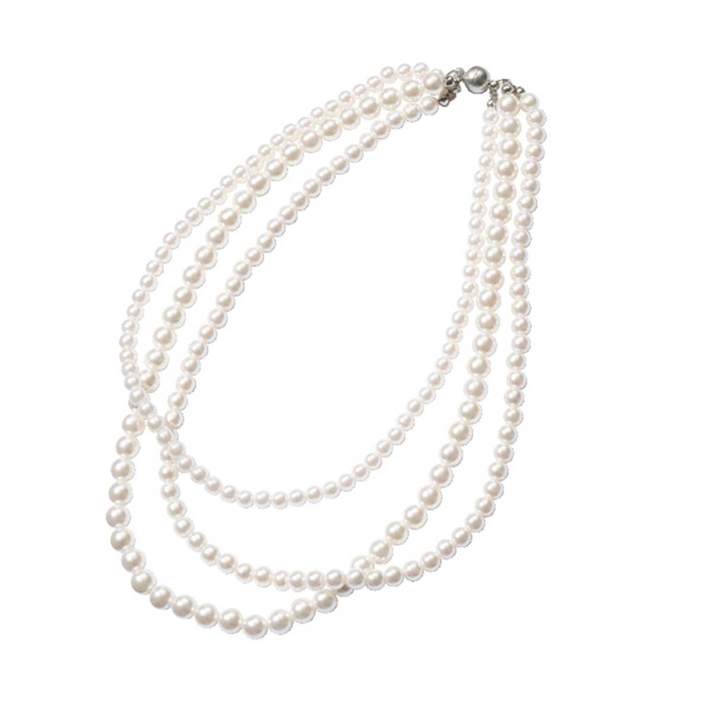 異なる長さを組み合わせた3連。派手すぎない上品な華やかさで、ブローチがつけにくいトップスもこれ一つで首元がパッと映える救世主。