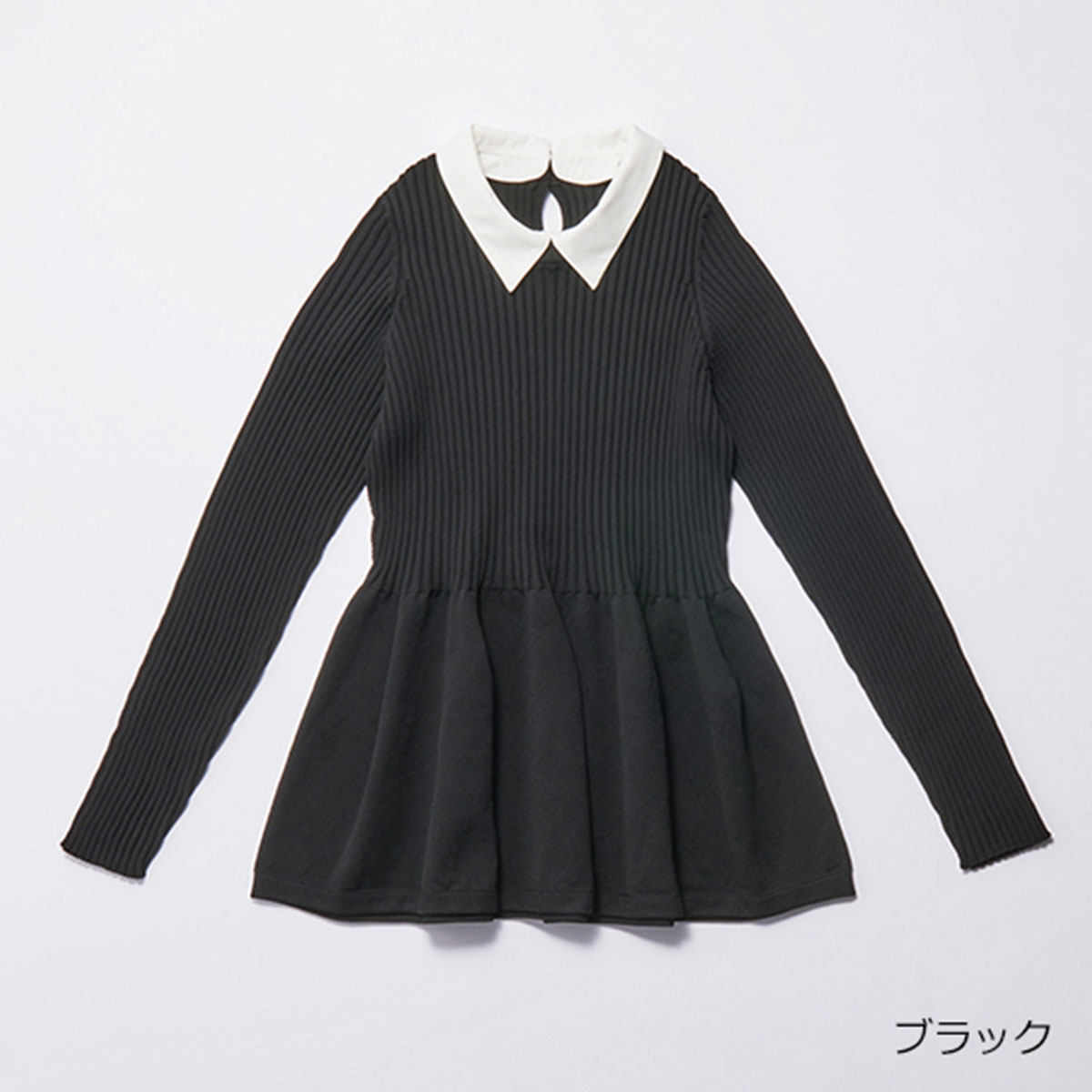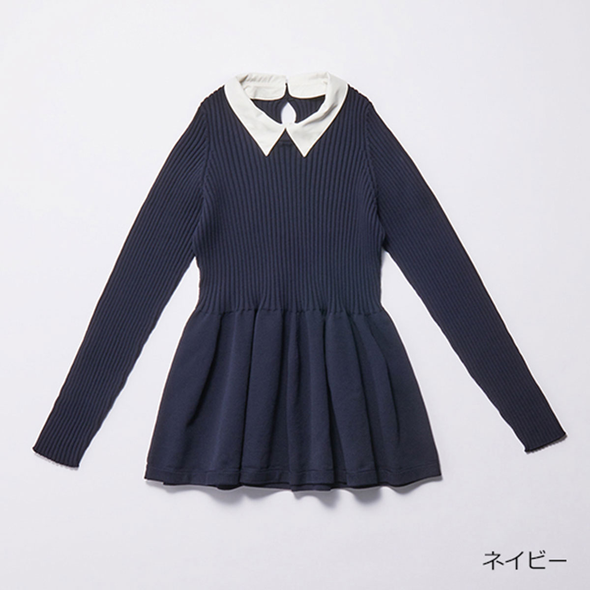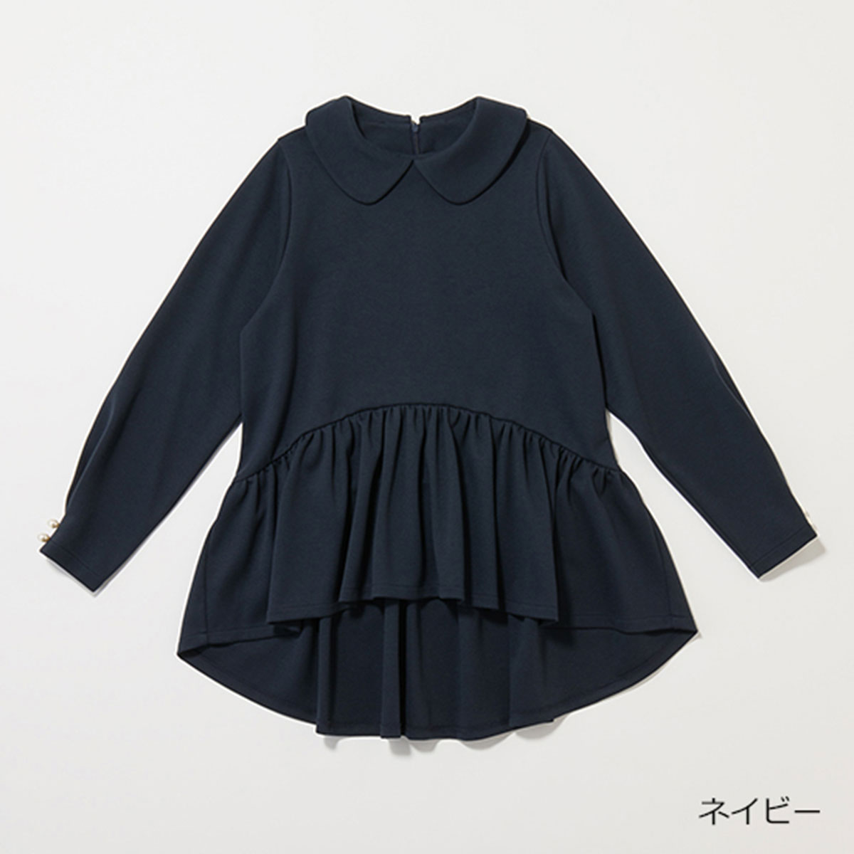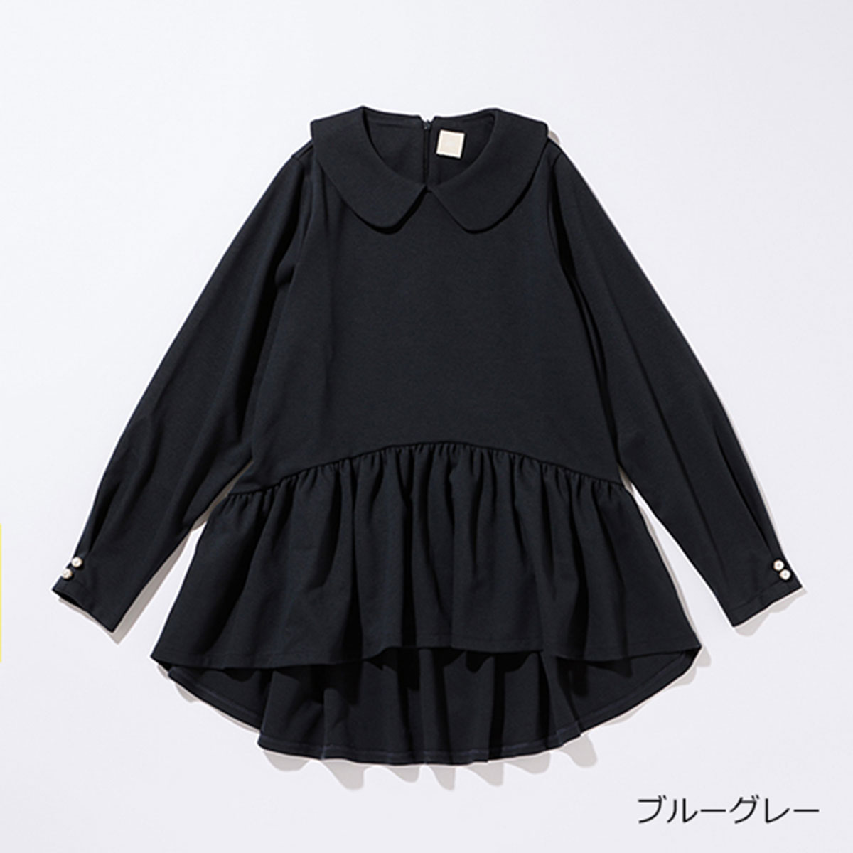 ペプラム部分は前上がり・後ろ下がりのデザインで、スタイルアップ&カバー効果も。合わせるボトムスをきれいめに替えれば参観日なども対応可能。