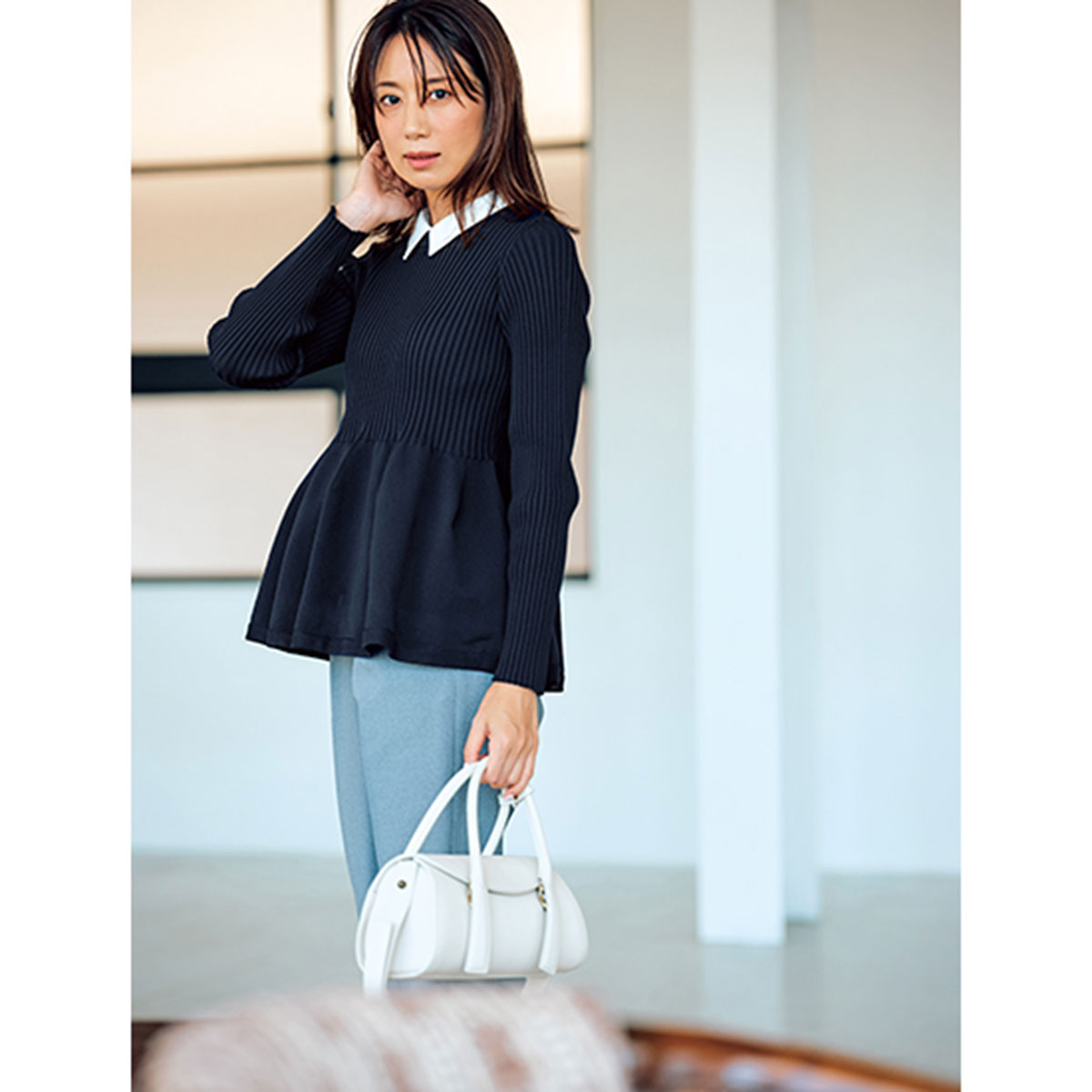 ➀③撮影/金谷章平(人物)、清藤直樹(静物)スタイリング/児嶋里美 ヘア・メーク/福川雅顕 モデル/東原亜希 取材・文/嶺村真由子 編集/西脇治子*VERY2023年11月号「「今欲しい!」がkokode.jpで買える! THREE SQUARE さりげなく体形カバーできる名品が揃いました ときめきを運ぶスリスクの甘い服♡」より。