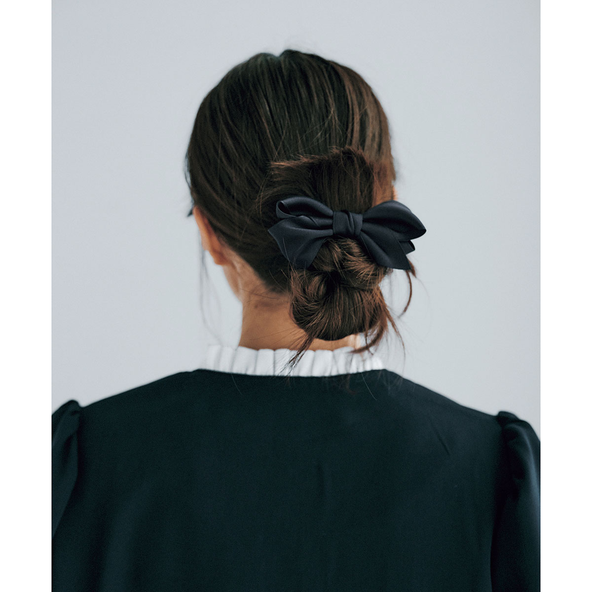 サテン素材。髪を挟むだけのバレッタはボブヘアの方にもおすすめ! 大きすぎない絶妙なサイズ感で、まとめ髪だけでなくダウンスタイルにもマッチ。