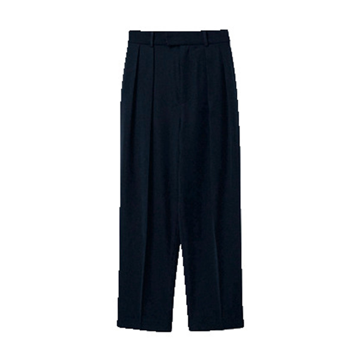 ブラウスと同素材。太もも周りにゆとりのあるテーパードシルエットに、ドレープ感やタックなど美脚要素が満載。各色1・2の2サイズ展開。