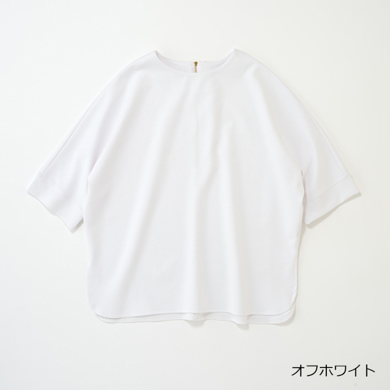 今の季節から夏まで長く活躍する一着。シンプルなTシャツもいいけれど、ドルマンシルエットならこなれ感と体型カバーを両立し、ワンツーコーデでも自信が持てます。ほどよくハリのある薄手の綿混ダンボール生地で、きれい見えするのも魅力。ワイドパンツとスニーカーに合わせてもカジュアルになりすぎず、洗練された大人のリラックススタイルに。シワになりにくく手洗い可能だから、子どもとの公園遊びや急な抱っこにも汚れを気にせず思いきり楽しめます。