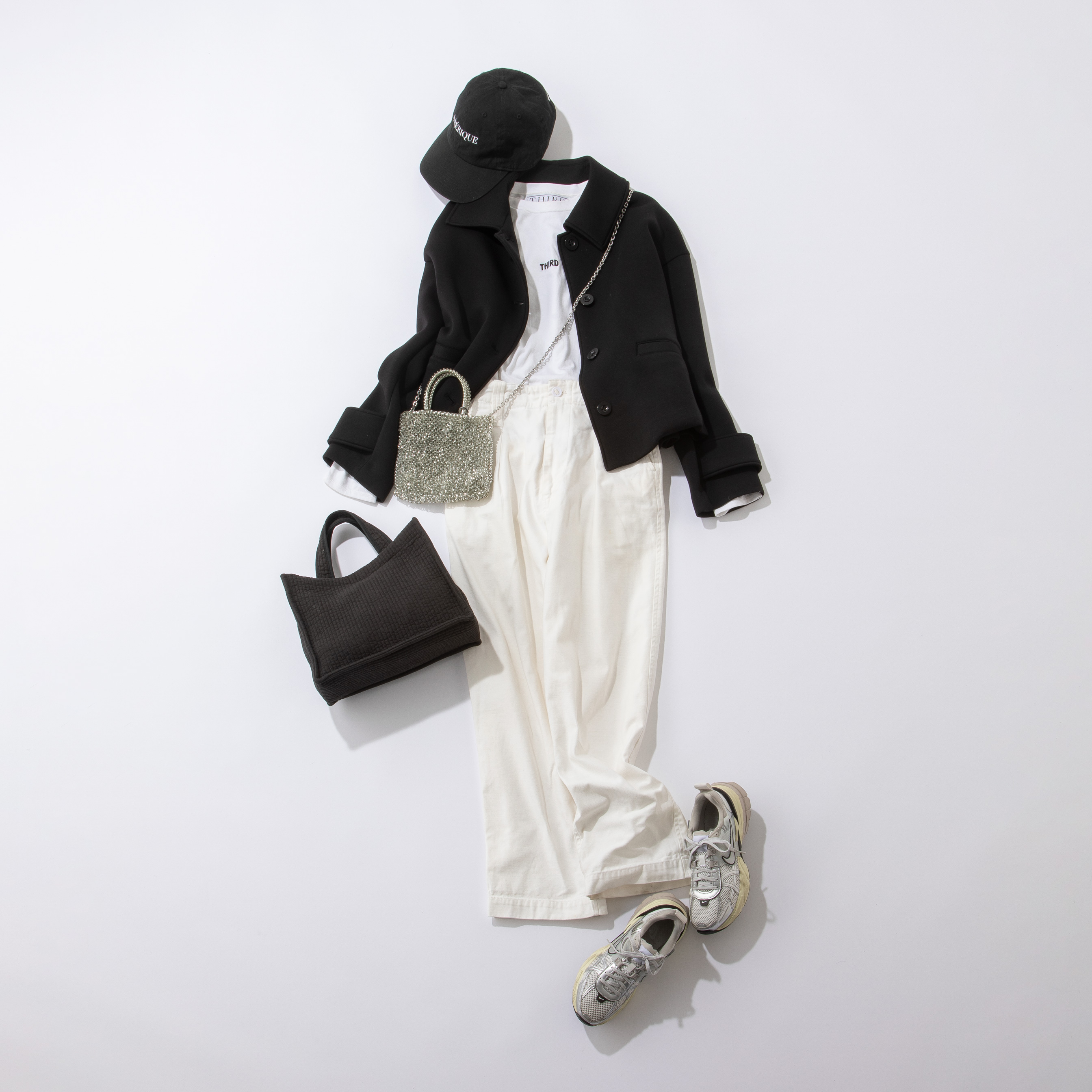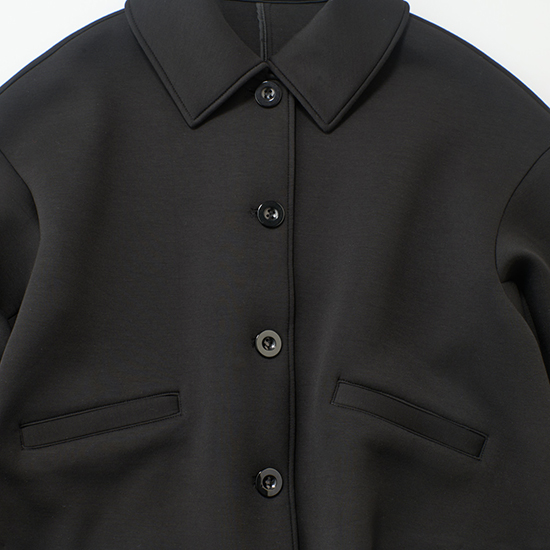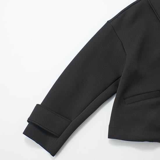 適度な厚みのもっちりとした生地で、ずっと着ていたくなる着心地のジャケットは動きやすさも抜群。上下ホワイトのコーデに合わせれば、春らしい軽さをキープしたまま引き締め役に。スニーカーやキャップ合わせの実用的なスタイルには、きらっとアクセントになる小物を合わせて。ほんのりフレアのテントシルエットなので、黒や紺のきれいめパンツと合わせれば、保護者会などのきちんと感の必要なシーンでの旬な着こなしが叶います。