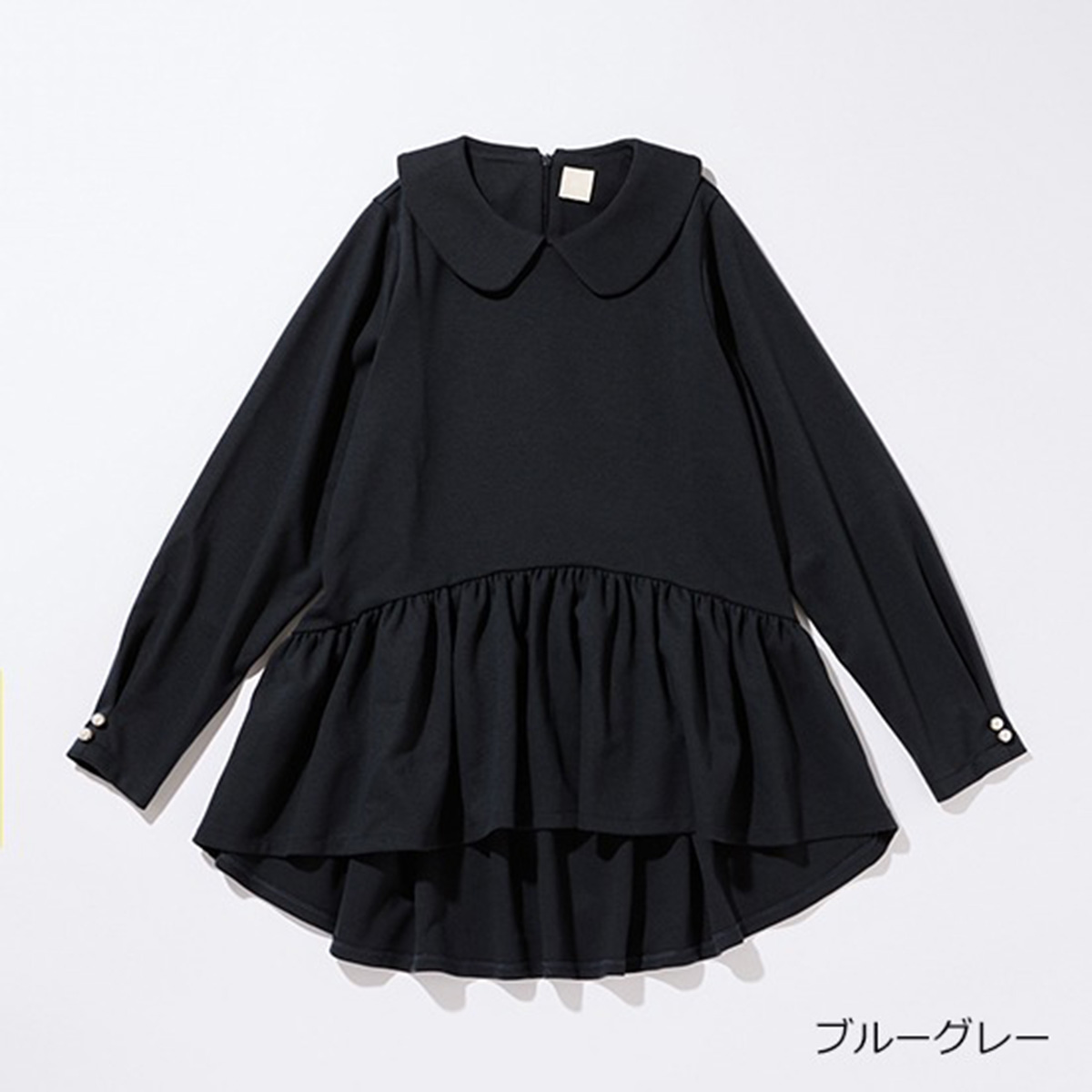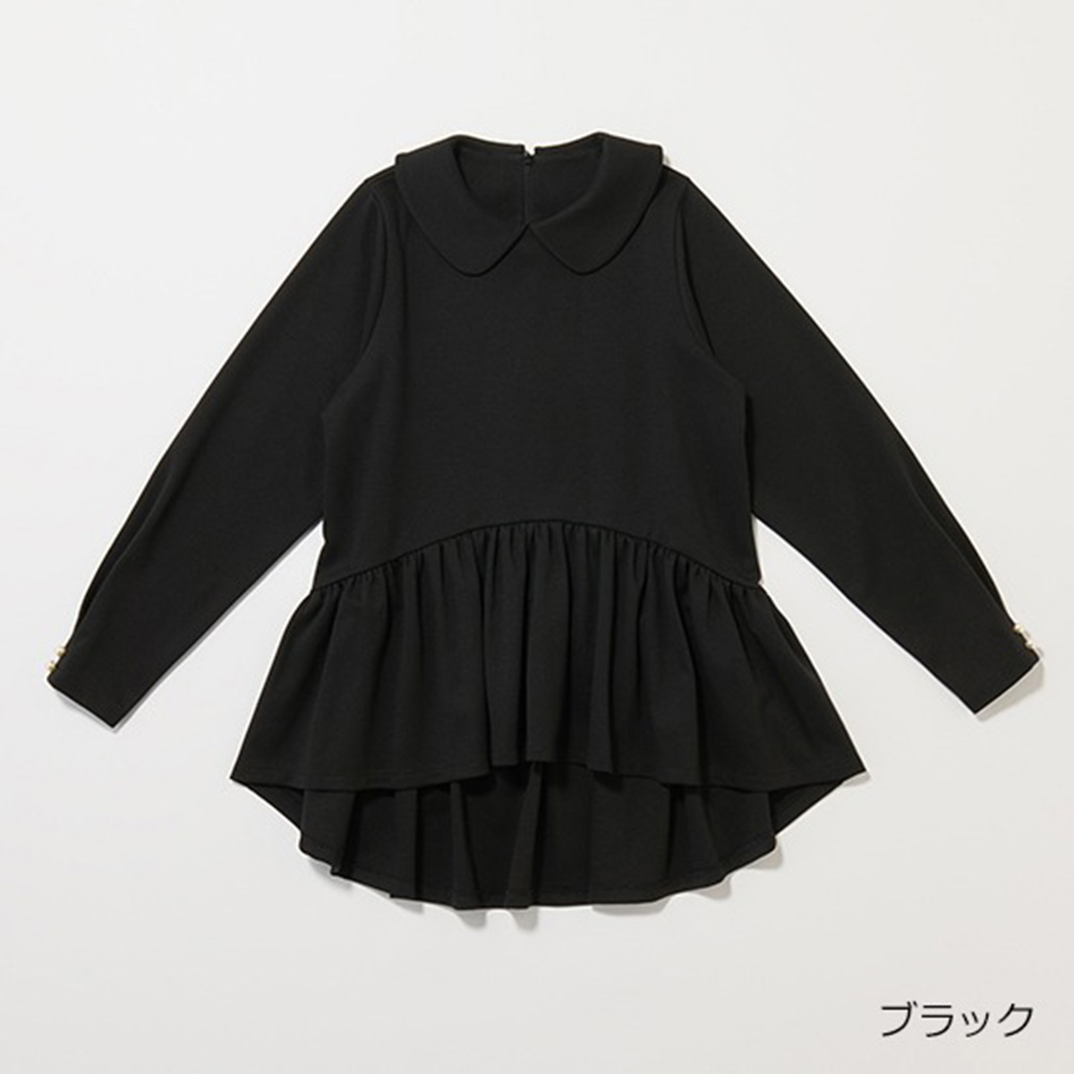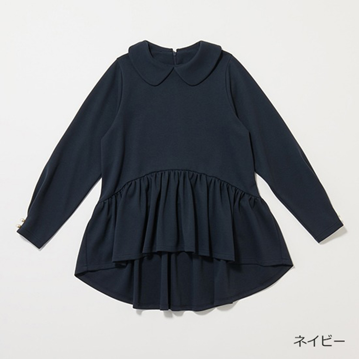 ペプラム部分は前上がり・後ろ下がりのデザインで、スタイルアップ&カバー効果も。合わせるボトムスをきれいめに替えれば参観日なども対応可能。家で手洗い可能。