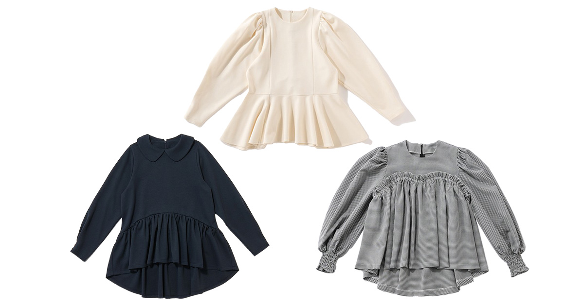 体型カバーと細見えを両立させる、絶妙設計。体のラインを拾わないシルエットでありながら、直線的なシームラインですっきりと!ペプラムデザインやボリューム袖も、甘派の心をくすぐります。