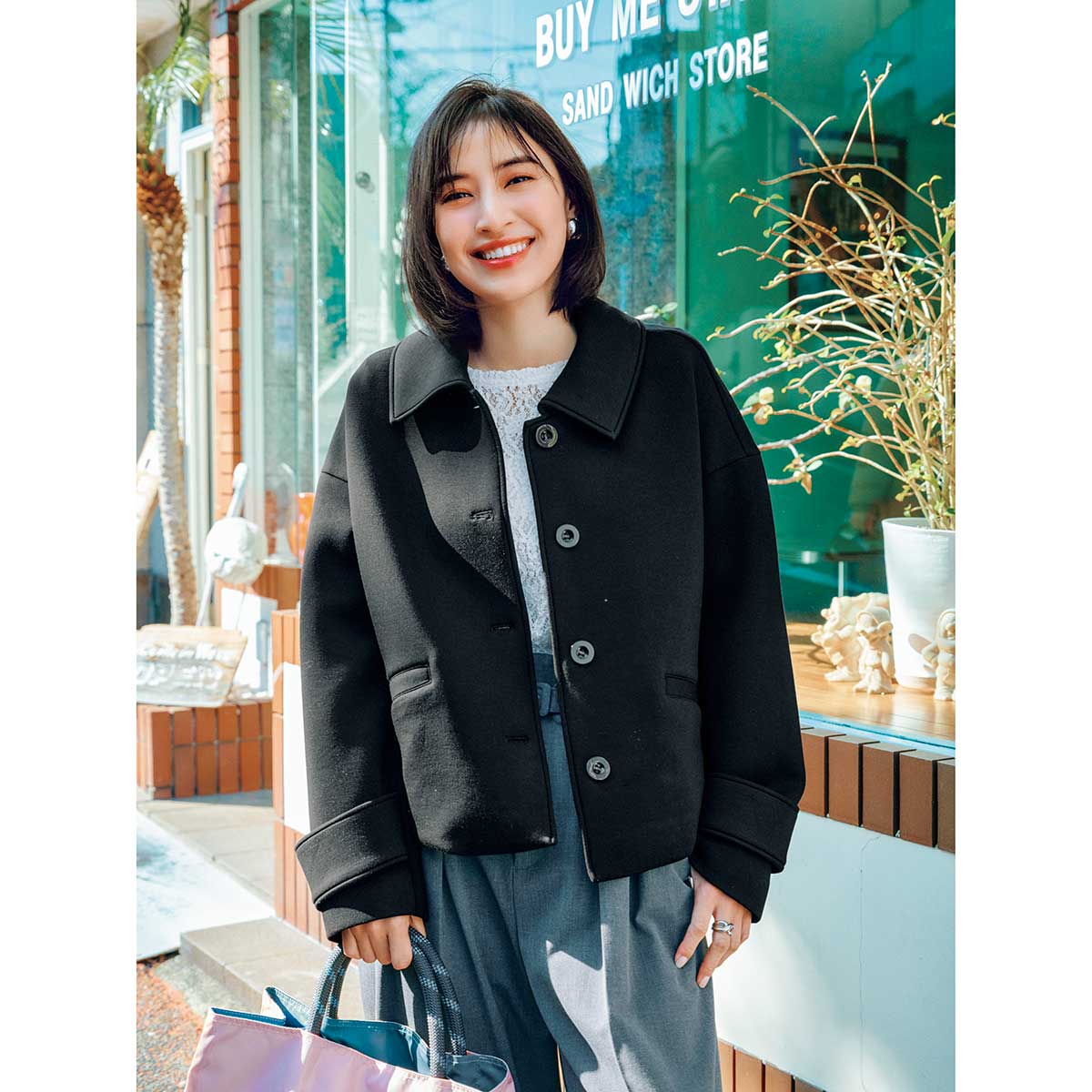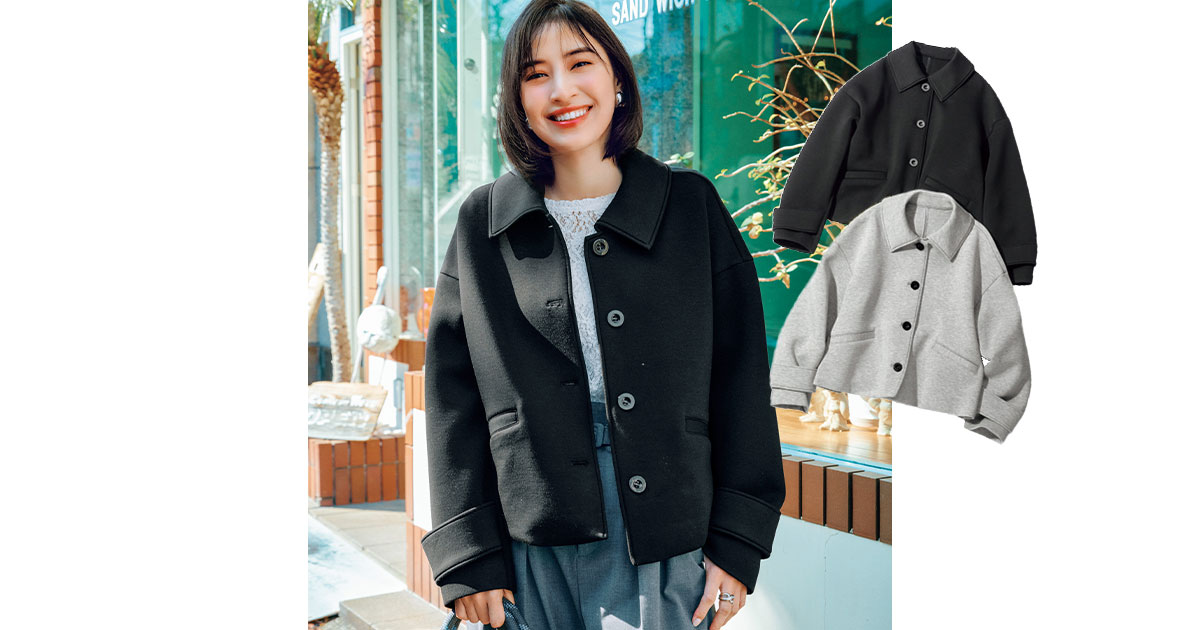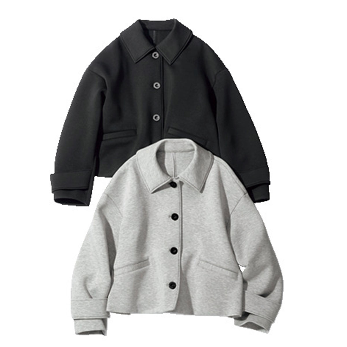 スウェットのような柔らかさなのに、見た目は端正。デニムジャケットのようなゴワつきがなく、自転車移動や抱っこが多い日も快適。トレンドのショート丈でも、腰まわりはきちんと隠れる安心バランス。黒ならより引き締まった印象で、お仕事シーンにも自然にフィットします。