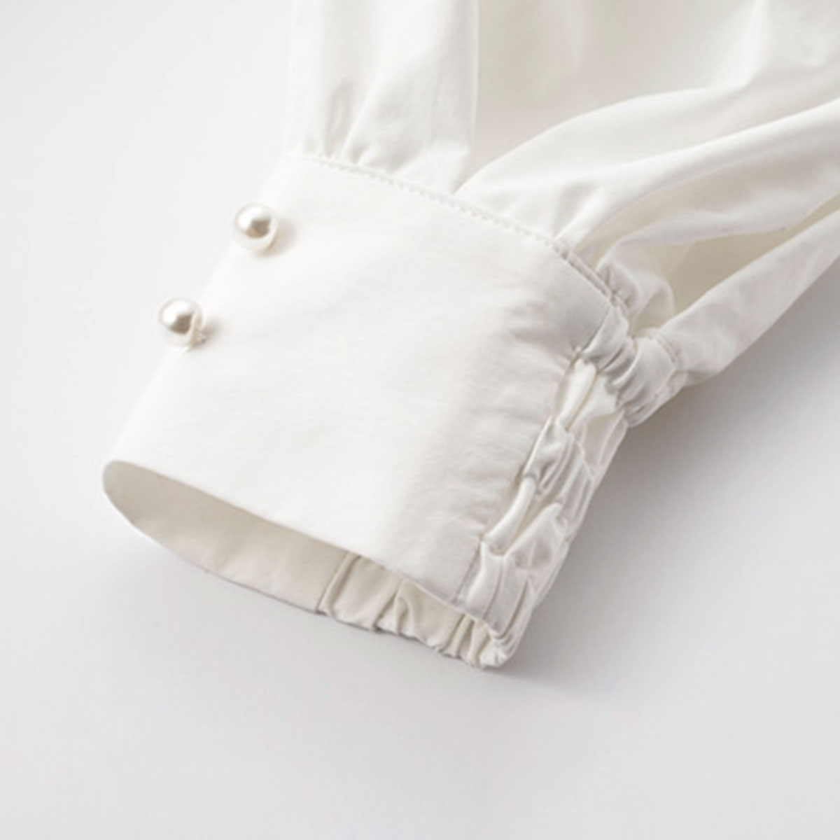 タック×ギャザーの立体設計パールボタンで手元に品格を