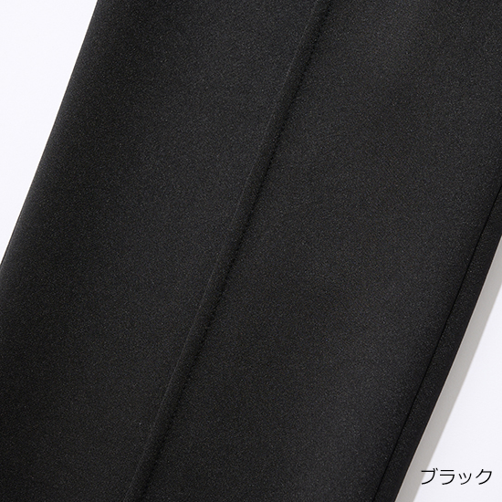「私が特に気に入ったのは、センターライン入りの美脚テーパードパンツ。視覚効果で美脚をさらに後押ししてくれて、気になる下半身のラインをさりげなくカバーしてくれます。生地が肉厚感だから、身体の肉を拾わないのも優秀です。オケージョンシーンでも自信を持って振る舞えそうです。パンツ2本とも穿いた瞬間に感じたのは、まさにストレスフリーな着心地。ストレッチがしっかり効いているので、自転車移動や長時間のデスクワークもこれなら余裕です。美脚テーパードスリムパンツは細めのラインできちんと感があるタイプ。ジャージー素材でケアが簡単なのも助かります。キレイめに仕上げたいときに頼れる1本です」明賀琴絵さん・41歳(160cm/8歳と2歳の男の子ママ)