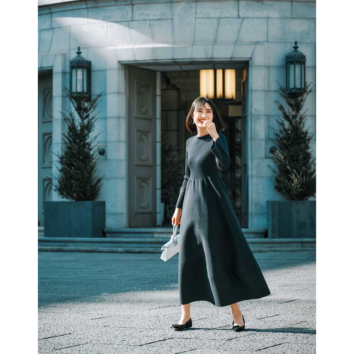 ワンピース¥19,800(ENMOCA)バッグ¥38,500(リンレザー)パンプス¥36,300(プリティ・バレリーナ╱エフイーエヌ)ピアス¥18,150(エスシル)ワンピース各¥19,800(ENMOCA)
