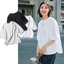 「楽ちんだけど、きちんと見えも欲しい…」そんなママたちの思いから生まれたスリスクのジャージーシリーズ。今回はドッキングした裾のチュールがポイント。ボリュームのある裾も透け感があることで重くならず、コーデに抜けを作ります。細身パンツ合わせはもちろん、ワイドパンツとも好相性。一枚でも手抜きコーデに見えず、しっかり華やかさがある頼もしいトップスです。