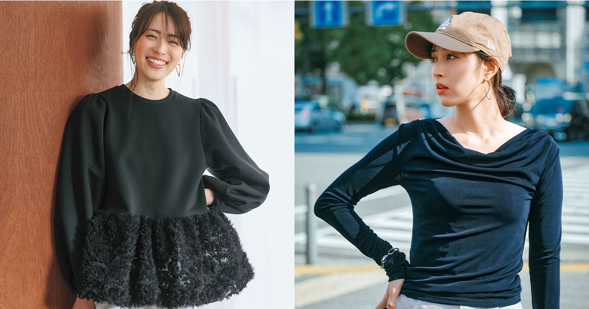 スニーカーの日に頼れるのが、ほどよく甘さをプラスできるトップスです。スニーカー合わせでもきれい見えが叶う着こなしをご紹介します。