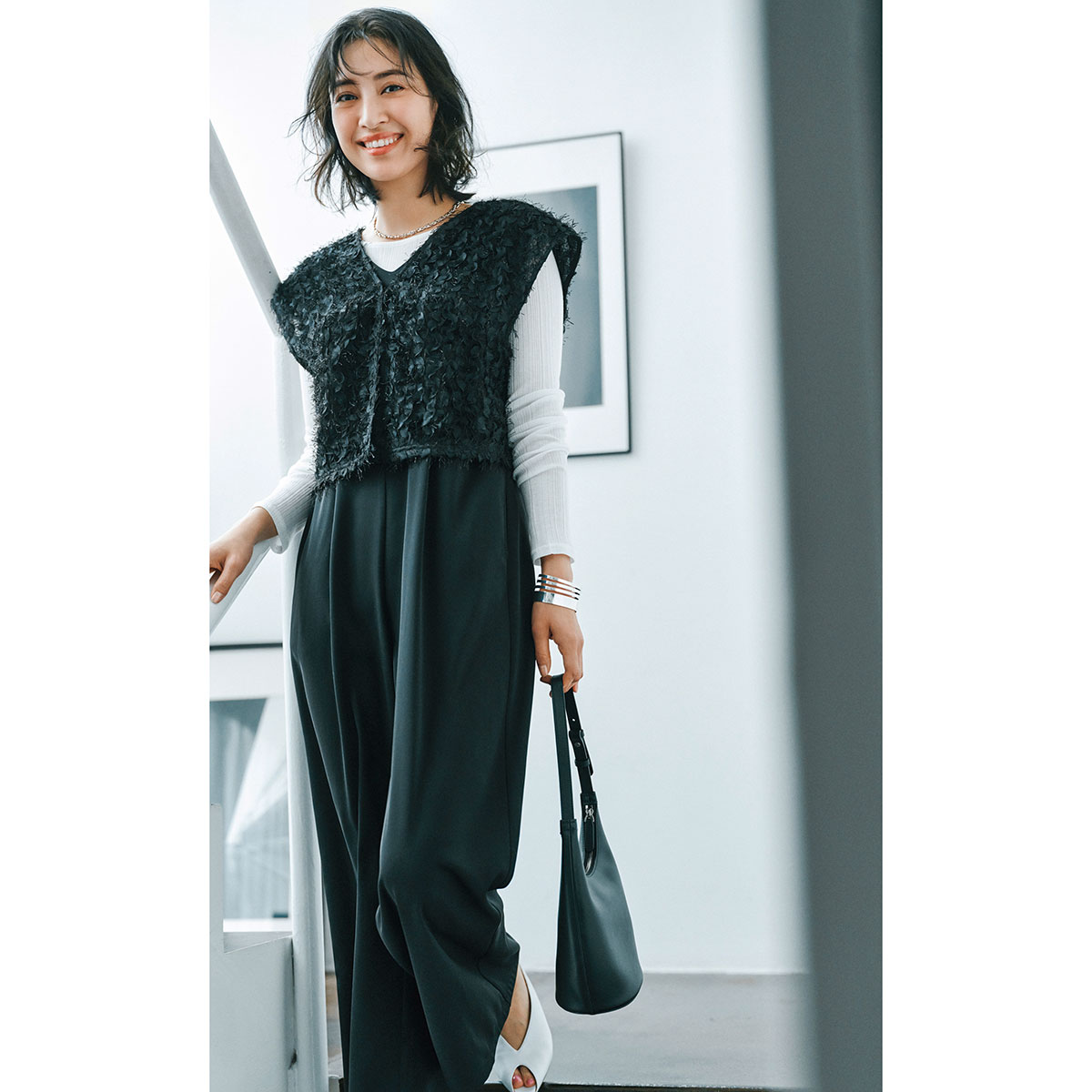 お仕事復帰に頼れるのが、1枚でコーデが完成するオールインワン。お腹やお尻まわりを自然にカバーしながら、すっきり見えも叶うのが魅力です。忙しい毎日にちょうどいい、洗えて扱いやすい一着をご紹介します。