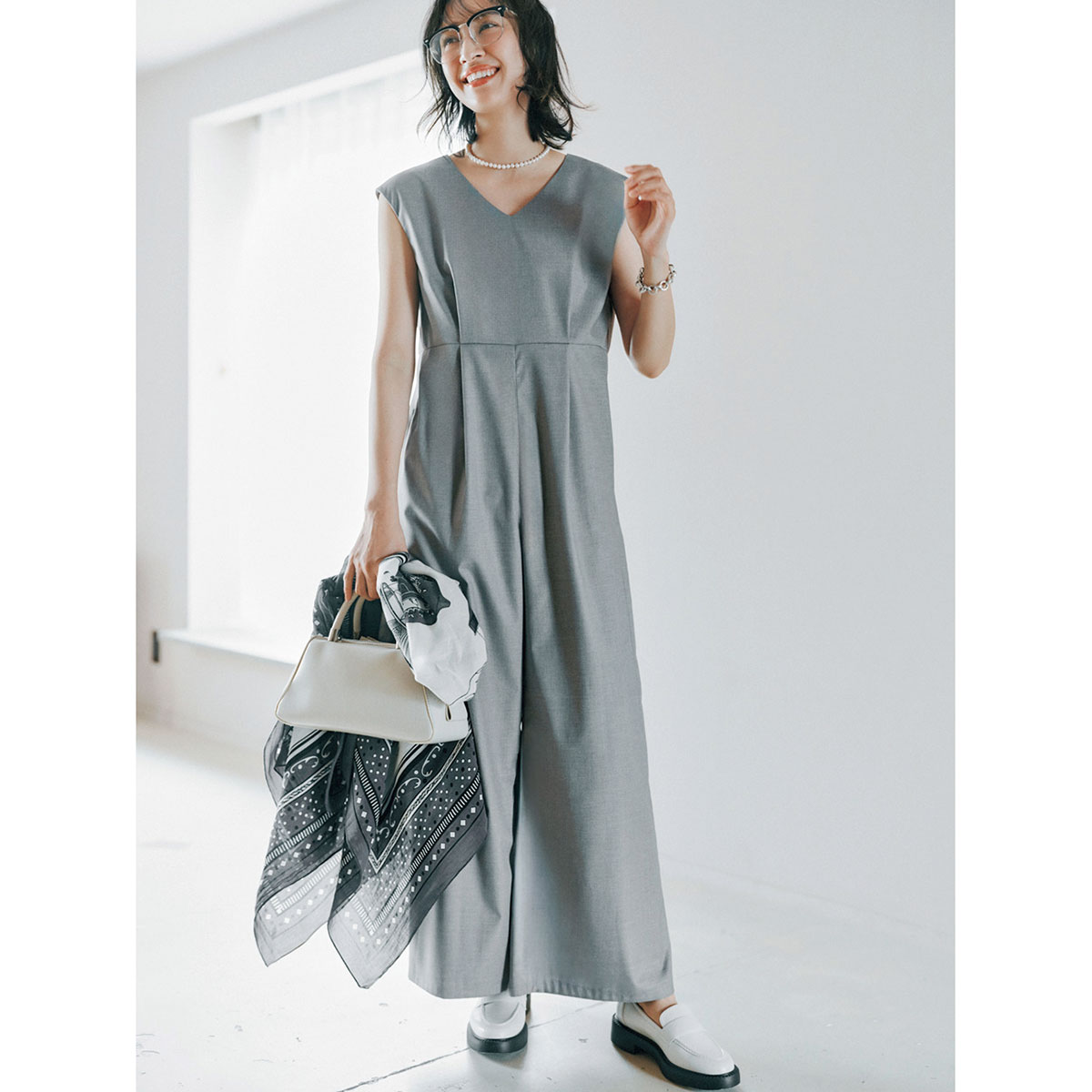 オールインワン[ボレロとセット]¥36,300(アレグレ)バッグ¥7,590(カシュカシュ/アンビリオン)ローファー¥13,200(アルテミス by ダイアナ/アルテミス by ダイアナ アーバンドック ららぽーと豊洲店)ストール¥15,400(マニプリ)めがね¥22,770(レイバン/ルックスオティカジャパン カスタマーサービス)ネックレス¥22,000(アビステ)ブレスレット¥89,100(バルブス/ZUTTOHOLIC)